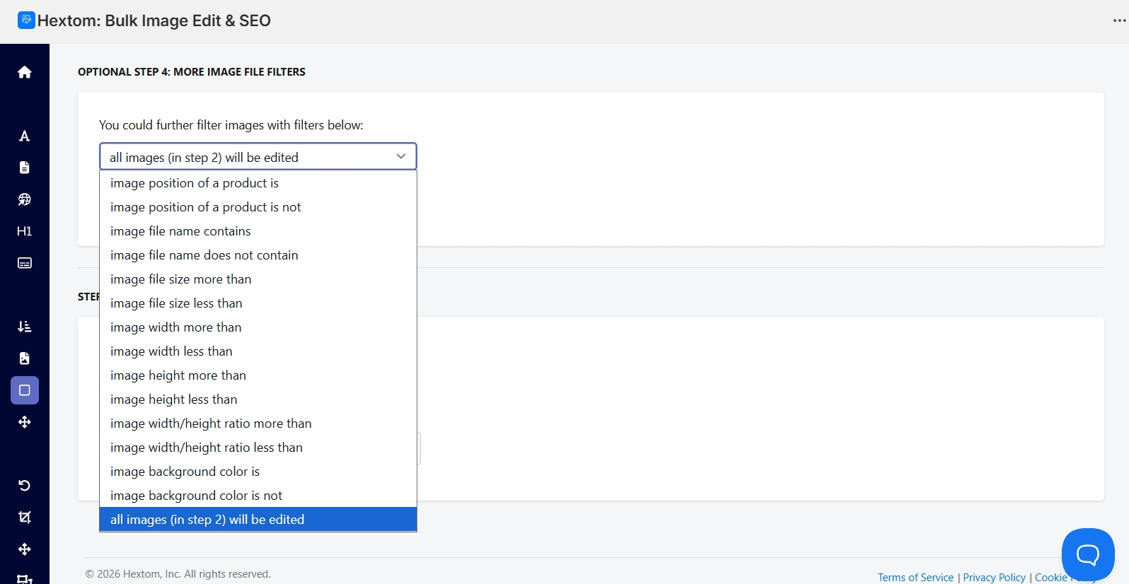 If you would like to filter the images, you can set it up on this step. There are a lot of options to choose from so feel free to choose any of these selections to narrow down the images that you'd like to edit. If you are looking to edit all of the images, you can skip this step.