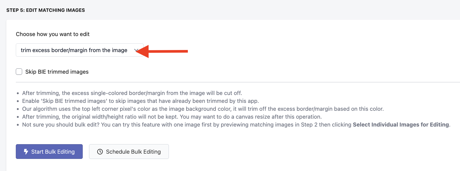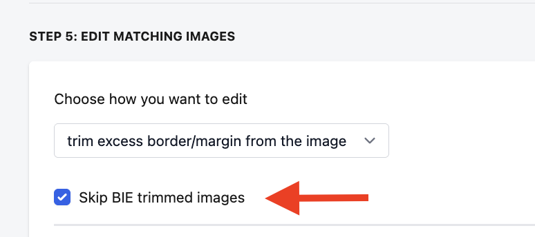 If you want to skip editing images that our app has already trimmed previously, check the box Skip BIE trimmed images.