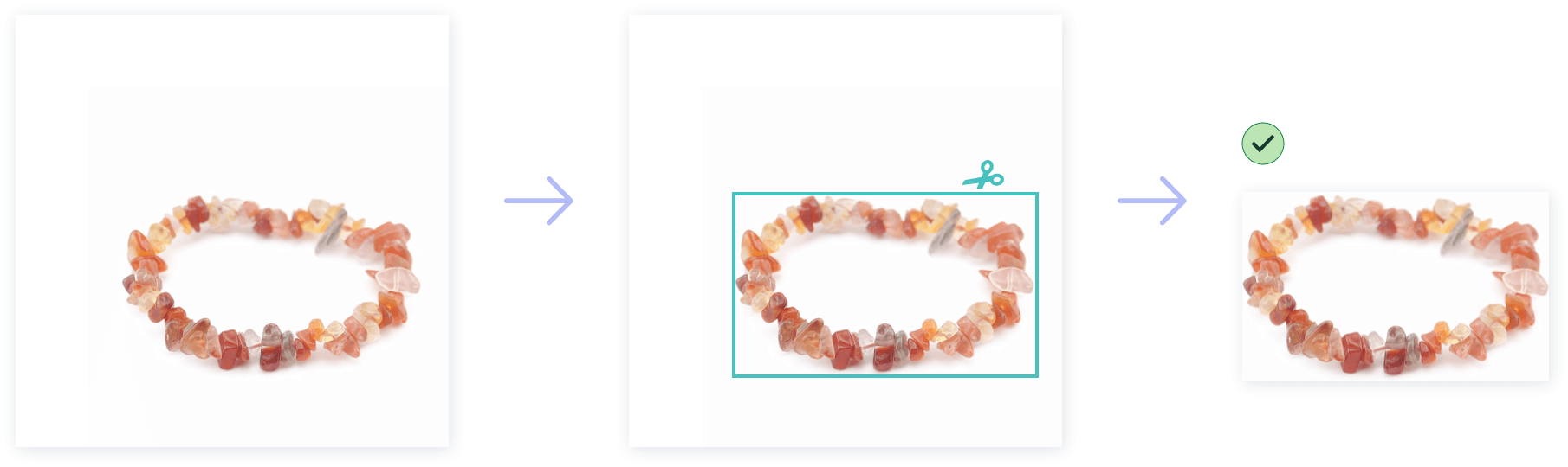 The Trim function in our app automatically removes excess borders to make your product the main focus. Our algorithm looks at the top-left corner pixel to identify your background color. It then trims away any matching solid-colored margins from all four sides.