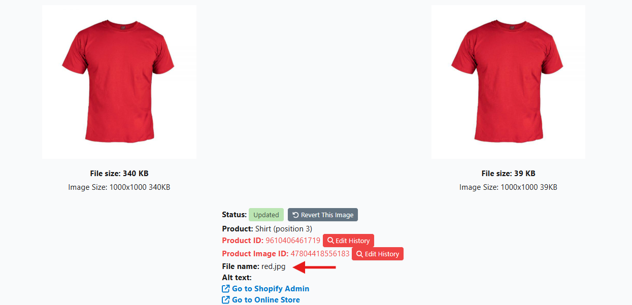 In the screenshot below, we can see that it edited the images that are in PNG format and converted them accordingly. This resulted in lower file size, making the loading time faster for our customers.
