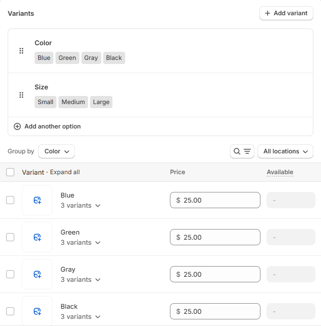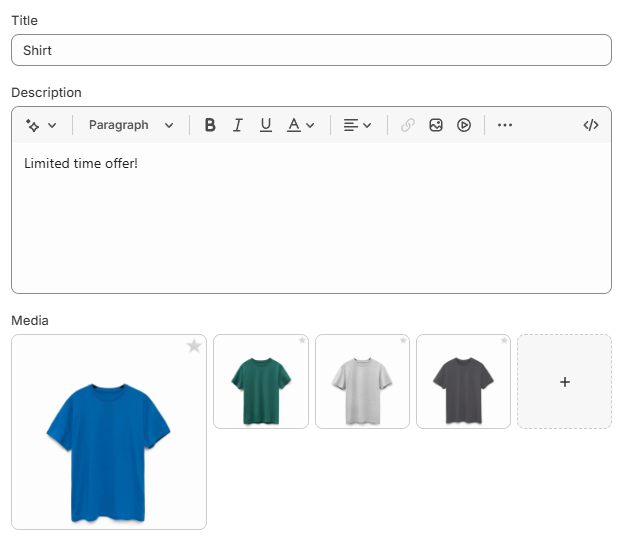 In this example, we want to link the blue shirt image to all variants that use the Blue option.