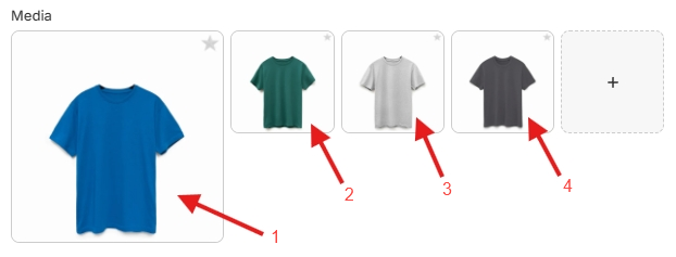 After the task is finished, all variants with the blue option value will be linked to the 1st image (the blue shirt).